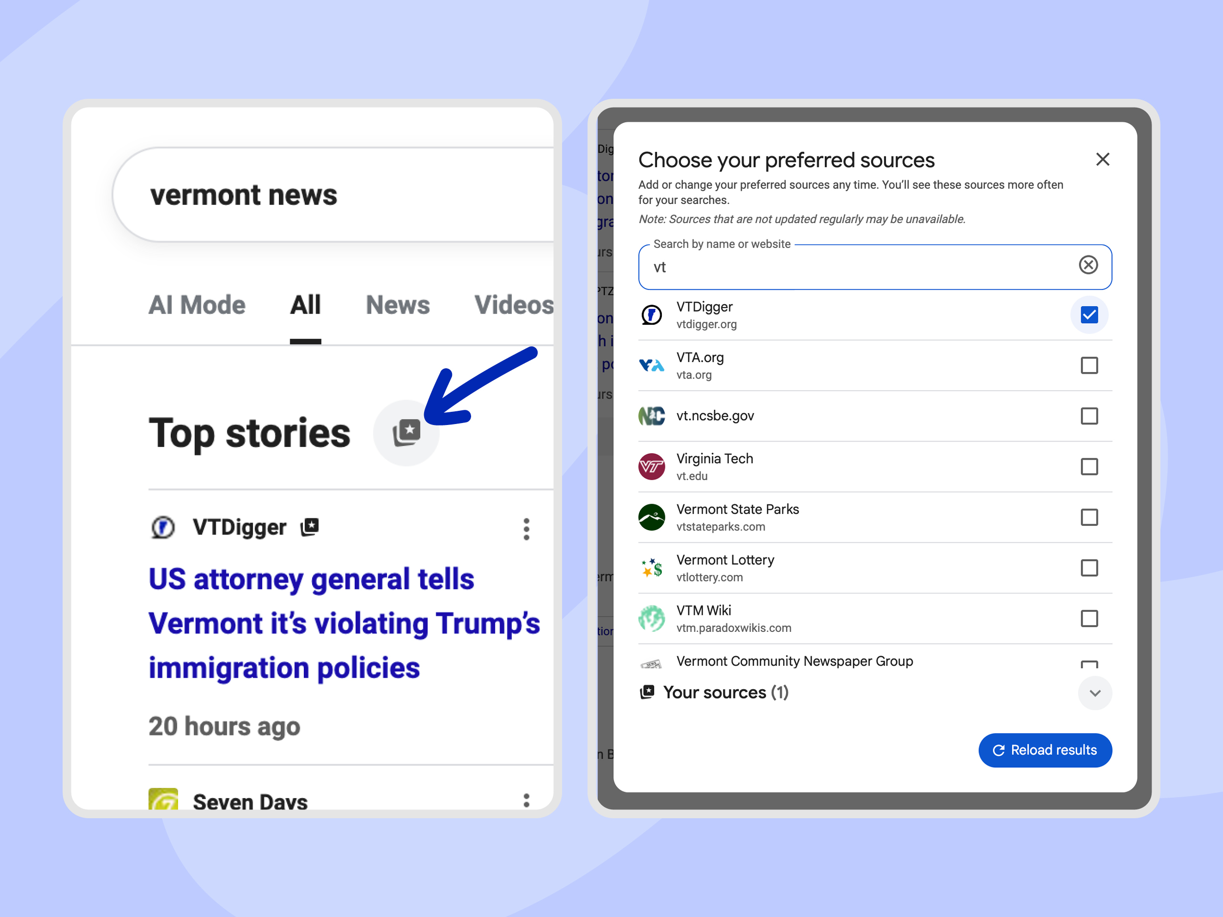 Choosing VTDigger as a preferred source keeps reliable, local reporting close at hand in your everyday searches, especially during breaking news and fast-moving statewide issues. It’s a small step that helps you find updates quickly while keeping your feed focused on sources you trust.