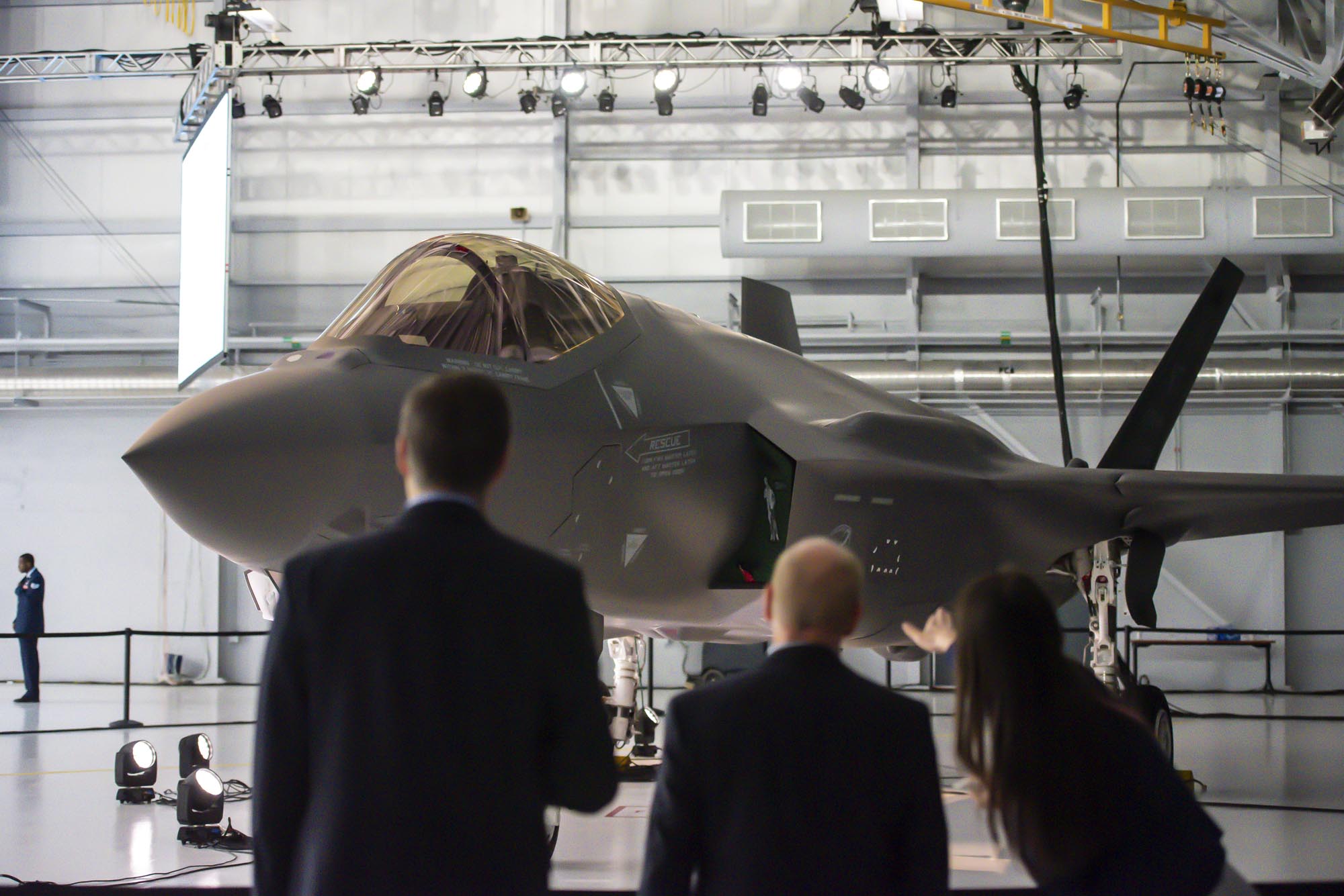 A man in a suit and striped tie speaks at a press conference in front of microphones. An American flag and scenic painting are in the background.